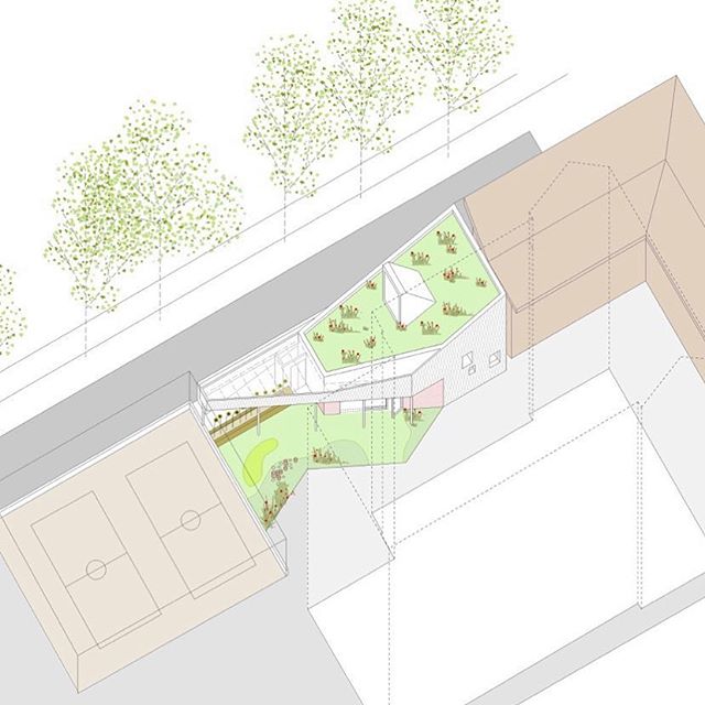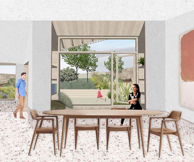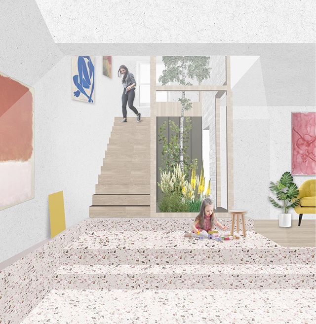 Work in progress: Study images for works to a house and garden studio in the de Beauvoir conservation area. Our interventions are seen as a series of timber sculptures within a long and leafy back garden. The project features a double height internal courtyard, picture windows looking onto the garden and a bespoke terrazzo floor. #hayhurstandco #debeauvoir #house #gardenstudio #terrazzo #courtyard