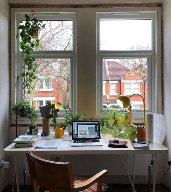 Working from home: This is the beginning of our third week of #WFH and our new work environments are just beginning to feel lived-in. This is Nick’s desk at his south London home where a number of plants from the studio are keeping him company.