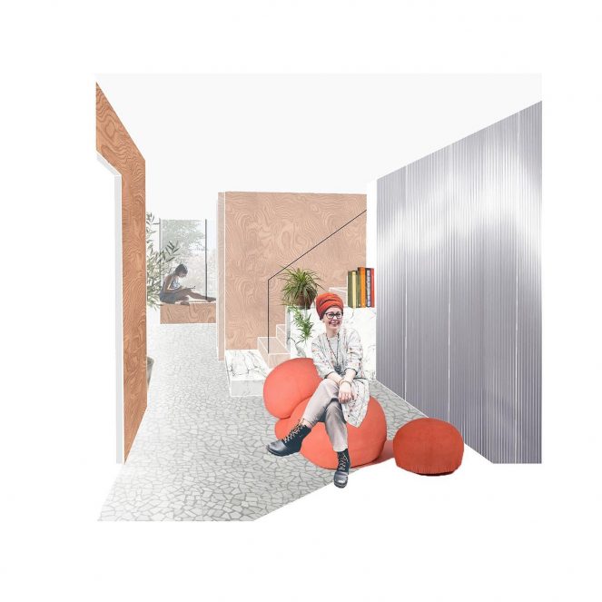 Work in progress images are exploring the architectural journey through the house: spatial connections, material language and transitions from ‘rich’ spaces to ‘light’ spaces.