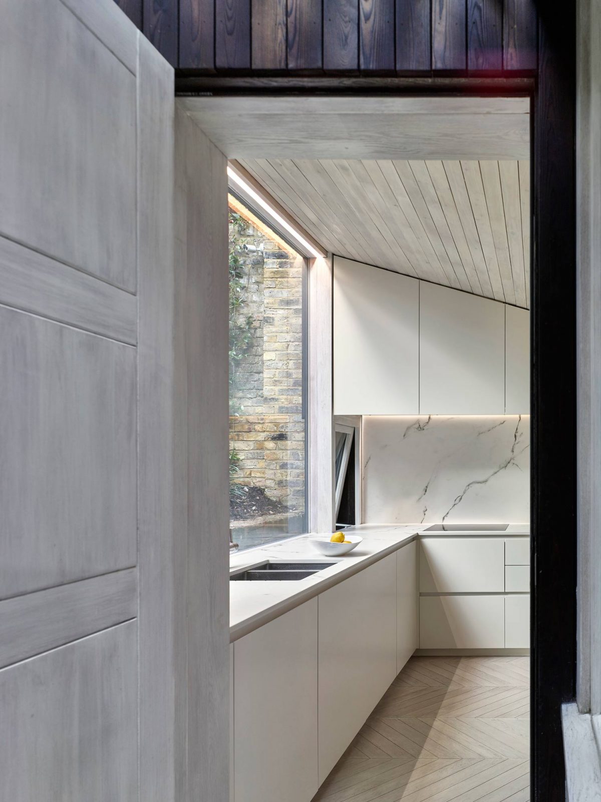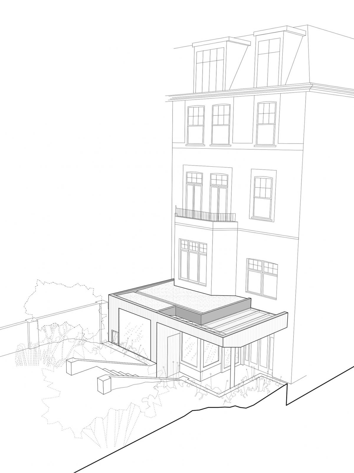 Set amongst the mature rear gardens of the Maida Vale Conservation Area, this small, rear extension transforms the basement flat of a large Victorian terrace into a light-filled, family home that opens out onto its rear garden.