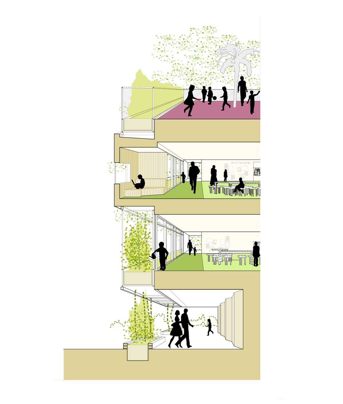 Hillyfield at the Park is a new 4FE primary school that required the remodelling and extension of an empty, and un-loved 1960s secondary school building on the edge of Lloyd Park in Walthamstow, east London. In addition to mainstream spaces, the project provided spaces for children with a variety of special educational learning needs: the project included sensory rooms and therapy rooms.