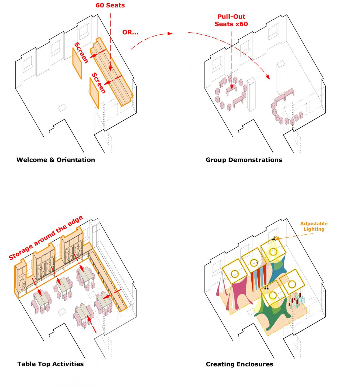 The Clore Learning Centre at the RIBA is a destination for the public to engage with architecture as part of a creative learning programme. It includes a dedicated studio, study room, outdoor roof terrace and an interactive display area showcasing the Centre’s work. The new spaces are designed to be inspirational setting for hands-on, creative activities for a range of audiences, from children and families to life-long learners.